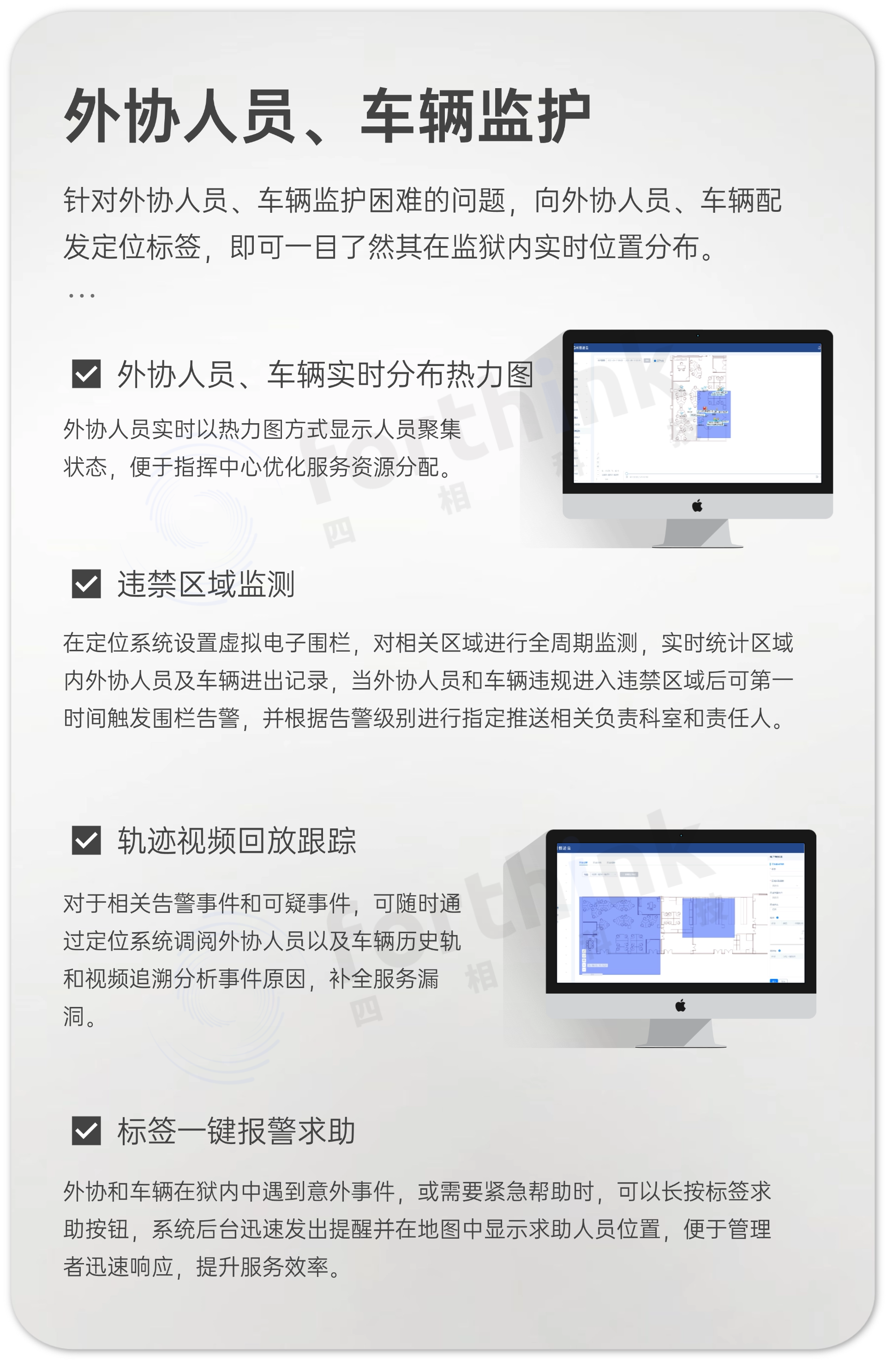 四相科技為該女子監(jiān)獄定制的智慧監(jiān)獄安全管控方案推動(dòng)了被監(jiān)管人員管理工作向制度化、實(shí)時(shí)化發(fā)展,有效提升了監(jiān)獄監(jiān)管工作的安全和決策效率。未來,四相科技將繼續(xù)深耕位置物聯(lián)網(wǎng)領(lǐng)域,不斷創(chuàng)新技術(shù)、優(yōu)化產(chǎn)品,為監(jiān)獄管理提供更加智能化、人性化的解決方案,為構(gòu)建平安、法治、文明的現(xiàn)代化監(jiān)獄貢獻(xiàn)一份力量。