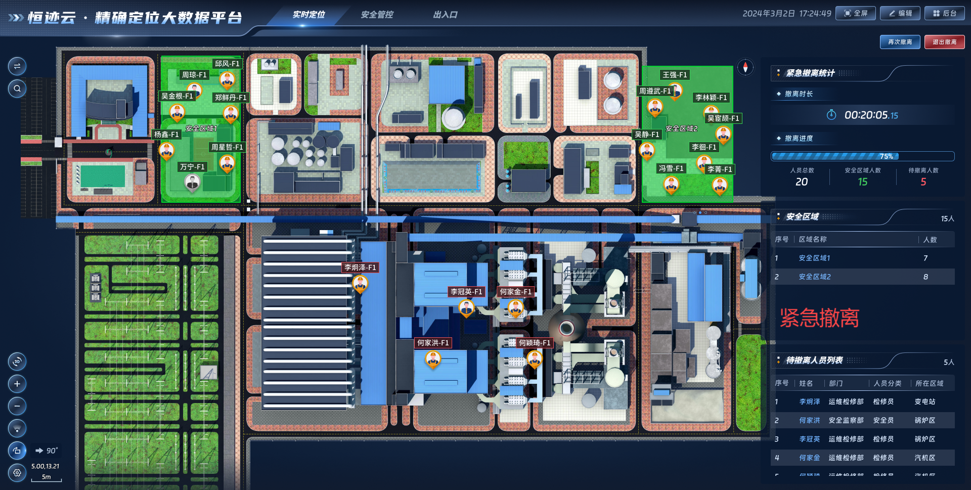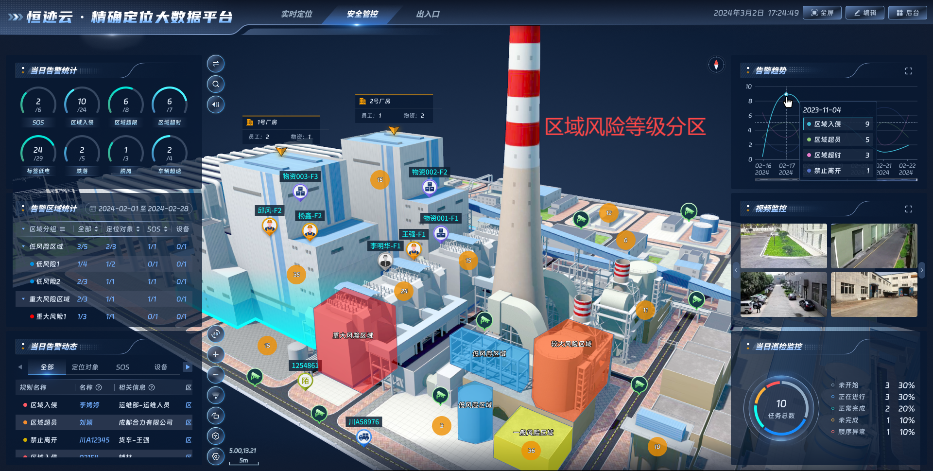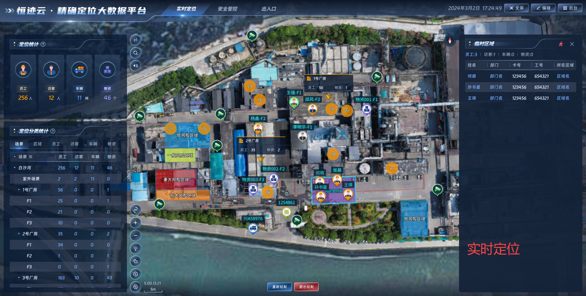 基于上述技術(shù),四相科技打造集軌跡回放、電子圍欄、越界報警、超員報警、智能巡檢聯(lián)動等多種功能于一體的高低精度室內(nèi)外一體化融合定位平臺,為企業(yè)提供安全生產(chǎn)信息化管理服務(wù),助力化工企業(yè)建立“可知、可視、可溯、可控”的全方位安全管控體系,有效提升安全生產(chǎn)水平,從而實現(xiàn)企業(yè)安全生產(chǎn)、高效管理的核心目標。